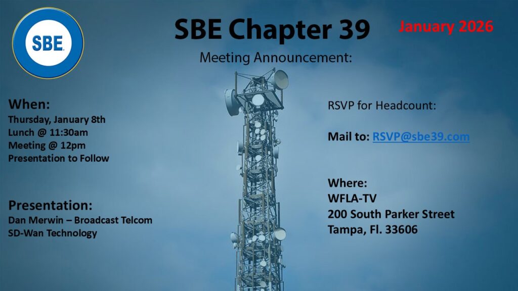 January 2026 Meeting SBE Chapter 39 Park across the street in the west parking lot, across from the pedestrian entrance. It is a gated parking lot, so push the call button and tell security that you are there for the SBE meeting